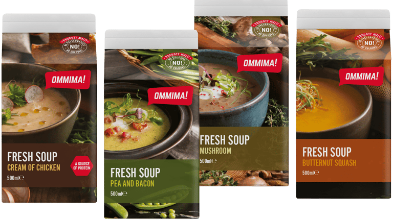 You’ve never tasted anything like the great, locally-made, convenient soups from Ommima! – made with natural ingredients, no artificial colours or preservatives, they’re microwavable in minutes! Made from only the tastiest ingredients, dinners can never be easier, with a great range including Cream of Chicken, Pea & Bacon, Mushroom and Butternut Squash. If life feels like it has no more surprises for you, say hello to Ommima! today – just snip and pour, and make lunchtimes something to live for again – surprisingly delicious!